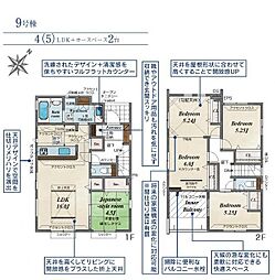 168平米の南向き敷地に、2面以上のバルコニーと全居室6帖以上を備えた4LDK。オール電化や複層ガラス、浴室乾燥など省エネ・時短の装備を揃える邸宅。家事と通勤の負担を同時に軽くする設計も魅力です。