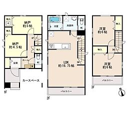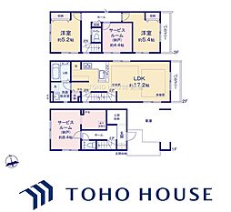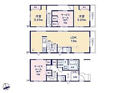 | 間取り | 2SLDK 間取り内訳:リビングダイニングキッチン 17.2帖(2階)・収納 8.4帖(1階)・洋室 5.2帖(3階)・収納 4.4帖(3階)・洋室 5.4帖(3階) |