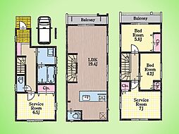 • 「2026年6月完成予定の2SLDK」.解放的なルーフバルコニーのある2階水回り集約プランの邸宅です。