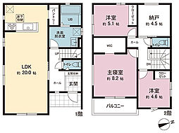 間取り内訳:リビングダイニングキッチン 20帖・洋室 8.2帖・洋室 5.1帖・洋室 4.6帖・収納 4.5帖
