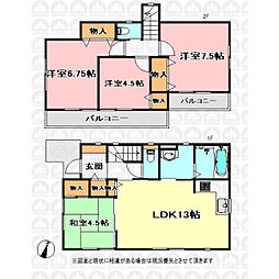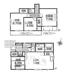 | 間取り | 4LDK 間取り内訳:リビングダイニングキッチン 13帖・洋室 7.5帖・洋室 6.7帖・洋室 4.5帖・和室 4.5畳 |