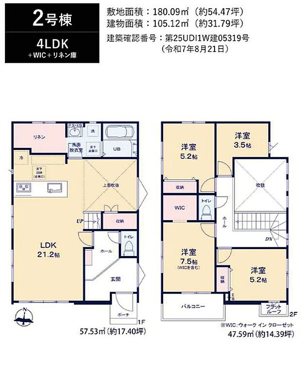 | 間取り | 4LDK 間取り内訳:リビングダイニングキッチン 21.2帖・洋室 7.5帖・洋室 5.2帖・洋室 5.2帖・洋室 3.5帖 |