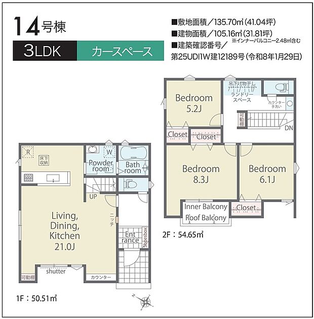| 建物面積 | 105.16m2 | ||