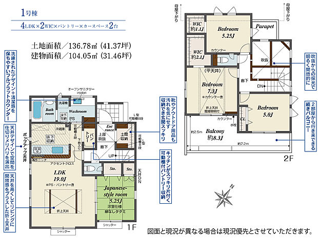 - 「建築条件付き土地」の「建物プラン例」は、土地購入者の設計プランの一例であり、プランの採用可否は任意です。