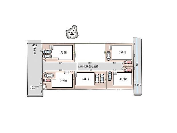 | 土地面積 | 104.49m2~113.85m2<私道負担面積144.71m2 私道負担割合1/6> | ||