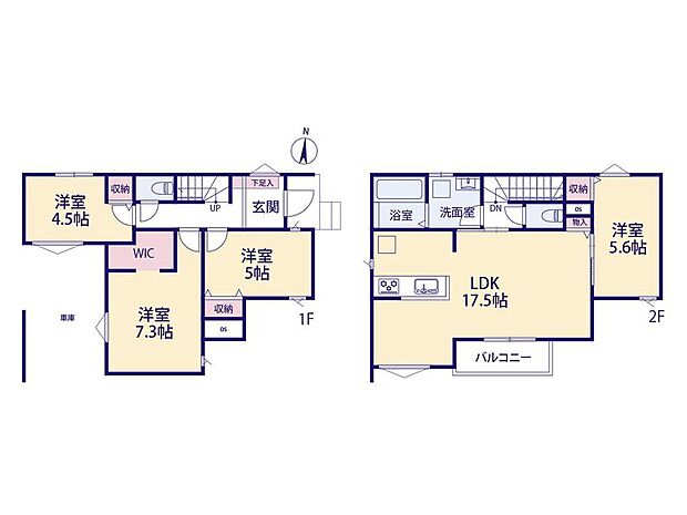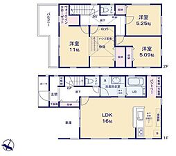 ビルトイン車庫面積:1号棟10.55平米、2号棟11.17平米