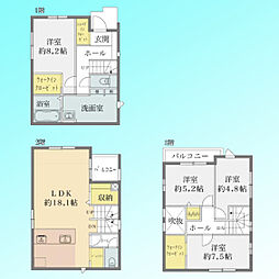 • (1号棟)、価格4980万円、3LDK+S、土地面積79.03m2、建物面積103.09m2