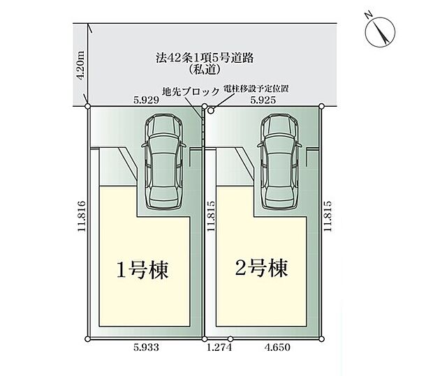 | 土地面積 | 70.01m2~70.08m2<私道負担面積130m2 私道負担割合1/40> | ||