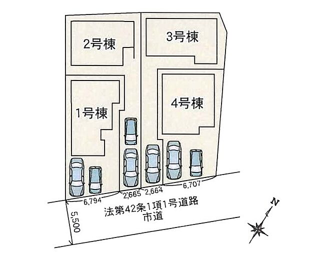 1号棟:南東5.5m /2号棟:南東5.5m /4号棟:南東5.5m