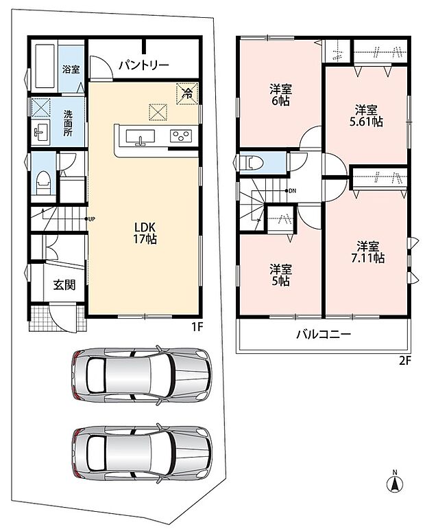 • 「建築条件付き土地」の「建物プラン例」は、土地購入者の設計プランの一例であり、プランの採用可否は任意です。