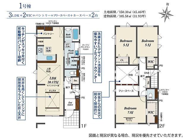 建物面積 105.47m2(約31.90坪)~105.58m2(約31.93坪)
