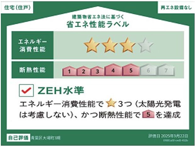 この物件の省エネ性能がわかる「省エネ性能ラベル」です。省エネ性能ラベルは2024年4月以降に建築確認申請した物件などで表示しています。