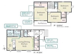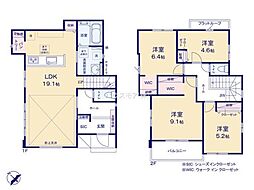 | 間取り | 4LDK 間取り内訳:リビングダイニングキッチン 19.1帖(1階)・洋室 9.1帖(2階)・洋室 5.2帖(2階)・洋室 6.4帖(2階)・洋室 4.6帖(2階) |