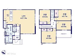 間取り内訳:リビングダイニングキッチン 19.8帖(1階)・洋室 6帖(2階)・洋室 6帖(2階)・洋室 6帖(2階)
