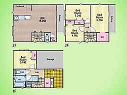 | 間取り | 3LDK 間取り内訳:リビングダイニングキッチン 14.6帖(1階)・洋室 7帖(2階)・洋室 6帖(2階)・洋室 5.5帖(2階) |