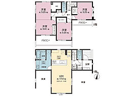 間取り内訳:リビングダイニングキッチン 19.5帖(1階)・洋室 11帖(2階)・洋室 6帖(2階)・洋室 5.2帖(2階)