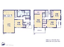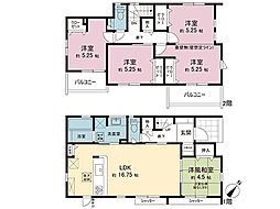 間取り内訳:リビングダイニングキッチン 16.7帖(1階)・和室 4.5畳(1階)・洋室 10.5帖(2階)・洋室 5.2帖(2階)x2