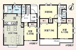 間取り内訳:リビングダイニングキッチン 19.5帖(1階)・洋室 11帖(2階)・洋室 6帖(2階)・洋室 5.2帖(2階)