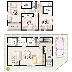 間取り内訳:洋室 7.2帖・洋室 5.2帖・洋室 5.2帖・リビングダイニングキッチン 15.6帖