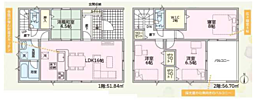 • 「土地(建築条件なし)」の「建物プラン例」に関して、そのプラン例は特定の建築請負会社によるもので、当該建築請負会社以外で建てた場合、同様のものが同価格で建てられるとは限りません。また、建築請負会社を特定するものではありません。