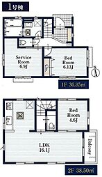 | 間取り | 3LDK 間取り内訳:リビングダイニングキッチン 18.4帖(2階)・洋室 7.5帖(3階)・洋室 4.5帖(3階)x2 |