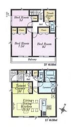 間取り内訳:リビングダイニングキッチン 18帖(1階)・洋室 5.2帖(2階)・洋室 6帖(2階)・洋室 11.2帖(2階)