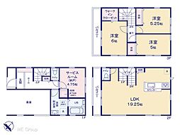 間取り内訳:リビングダイニングキッチン 21.6帖(1階)・洋室 9帖(2階)・洋室 5.2帖(2階)・洋室 5.2帖(2階)・洋室 5帖(2階)