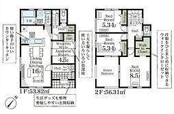 | 間取り | 4LDK 間取り内訳:リビングダイニングキッチン 16帖(1階)・和室 4.5畳(1階)・洋室 8.5帖(2階)・洋室 5.3帖(2階)x2 |