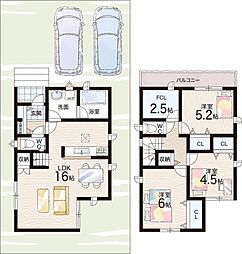 | 間取り | 4LDK 間取り内訳:リビングダイニングキッチン 17.1帖(1階)・和室 4.5畳(1階)・洋室 8帖(2階)・洋室 6帖(2階)・洋室 6帖(2階) |