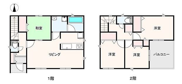 | 間取り | 4LDK 間取り内訳:リビングダイニングキッチン 17帖(1階)・和室 5.2畳(1階)・洋室 7.2帖(2階)・洋室 6帖(2階)・洋室 5.7帖(2階) |