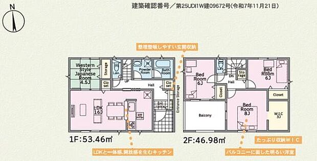| 間取り | 4LDK 間取り内訳:リビングダイニングキッチン 16帖(1階)・和室 4.5畳(1階)・洋室 8帖(2階)・洋室 6帖(2階)・洋室 6帖(2階) |