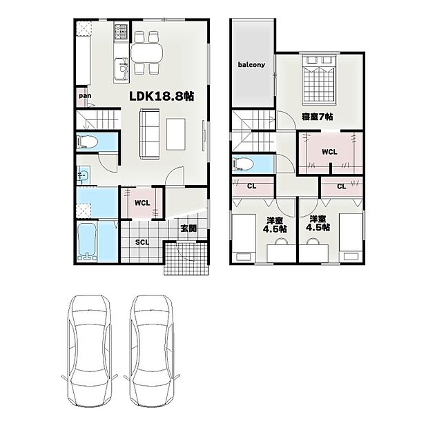 - 「建築条件付き土地」の「建物プラン例」は、土地購入者の設計プランの一例であり、プランの採用可否は任意です。