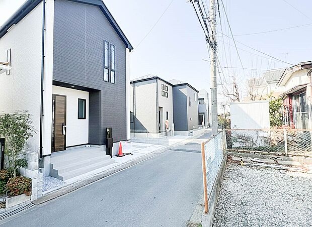 ■小学校まで徒歩7分・中学校まで徒歩13分  お子さまの通学も安心の距離です! ■スーパーまで徒歩15分・コンビニまで徒歩2分  ドラックストアまで徒歩3分  周辺にお買い物施設が充実! □シャープなフォルムで佇む2階建ての邸宅! □LDKは広々16帖越え!  明るく開放的な空間です! □リビングに隣接した洋室は使い方色々な便利な空間!(1号棟) ■浄水器一体型混合水栓を採用! ■3口コンロでお料理がはかどります! ■雨の日や冬場のお洗濯も安心の浴室暖房乾燥機を完備! ■全居室収納あり!お部屋をすっきり保てます!