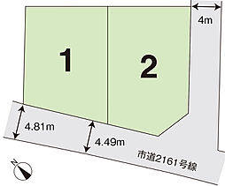 全区画幅員4.00m~6.00m(不定幅員)の開発道路(公道予定)に接する