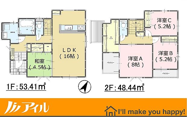 【4/11内装写真公開!即入居可能!アイルだけのお得なキャンペーン実施中!】 ◆1階 4.5帖の和室付きで、来客対応や多目的スペースとして活躍。LDK16帖と合わせて開放的な1階空間 ◆広々4LDK・バルコニー2か所! 建物面積約30坪 主寝室にはたっぷり3.7帖のウォークインクローゼット ◆生活便利な立地! マックスバリュ徒歩7分、バス停徒歩2分 ◆陽当たり、眺望、風通し良好 ★アイル×ARUHI 最短1分で借入可能額がわかるクイック事前審査!現地でも対応可能です ★ご成約特典「商品券」最大20万円相当プレゼント