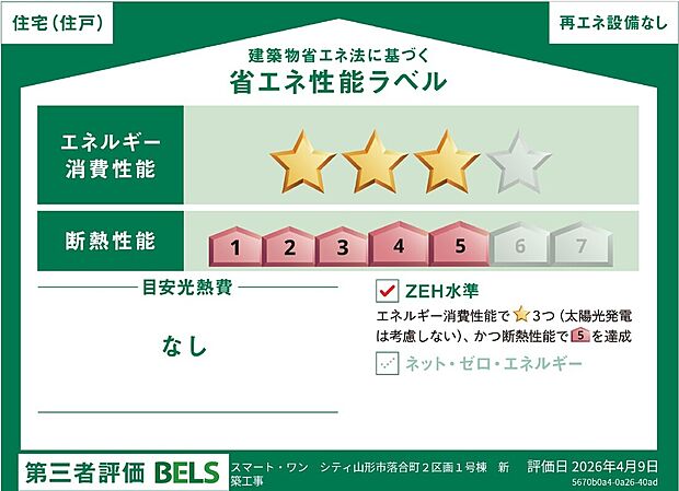 星マークの数が多いほどエネルギー消費性能が高いことを示しています。再エネ設備のない住宅は★0~★4の5段階評価、再エネ設備がある住宅は★0~★6の7段階評価となります。