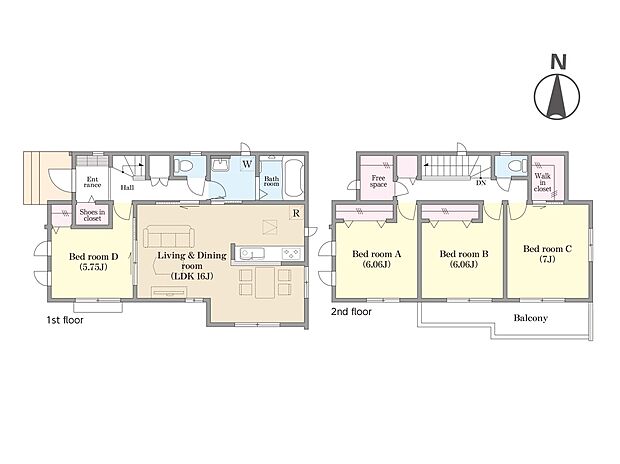 • 「建築条件付き土地」の「建物プラン例」は、土地購入者の設計プランの一例であり、プランの採用可否は任意です。