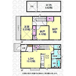 | 間取り | 2SLDK 間取り内訳:リビングダイニングキッチン 15.2帖(1階)・洋室 7.5帖(2階)・洋室 4.5帖(2階)・収納 6帖(2階) |