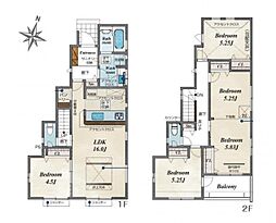 間取り内訳:リビングダイニングキッチン 20.2帖(1階)・洋室 8.5帖(2階)・洋室 5.5帖(2階)・洋室 4.8帖(2階)・洋室 4.5帖(2階)