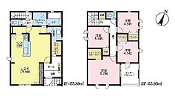 間取り内訳:リビングダイニングキッチン 19.6帖(1階)・洋室 8.2帖(2階)・洋室 4.5帖(2階)x3