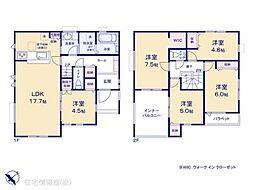 | 間取り | 4LDK(将来5LDKに対応可。) 間取り内訳:リビングダイニングキッチン 17.1帖(1階)・和室 4.5畳(1階)・洋室 5帖(2階)・洋室 5.2帖(2階)・洋室 10.5帖(2階) |
