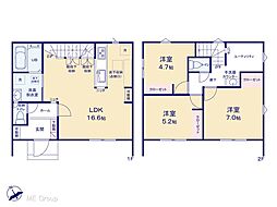| 間取り | 4LDK 間取り内訳:リビングダイニングキッチン 15帖(1階)・洋室 5.2帖(1階)・洋室 5.2帖(2階)・洋室 5.1帖(2階)・洋室 7帖(2階) |
