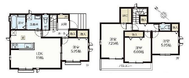 | 間取り | 4LDK 間取り内訳:洋室 7.2帖(2階)・洋室 6帖(2階)・洋室 5.2帖(2階)・洋室 5.2帖(1階)・リビングダイニングキッチン 15帖(1階) |