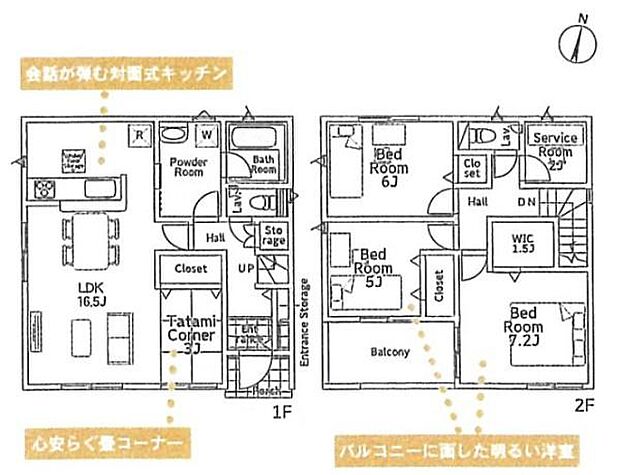| 間取り | 3LDK 間取り内訳:リビングダイニングキッチン 16.5帖(1階)・洋室 6帖(2階)・洋室 5帖(2階)・洋室 7.2帖(2階) |