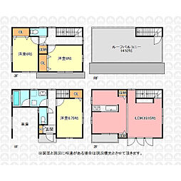 | 間取り | 3LDK 間取り内訳:洋室 6.7帖(1階)・リビングダイニングキッチン 19.1帖(2階)・洋室 6帖(3階)・洋室 6帖(3階) |