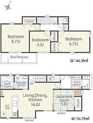 | 間取り | 3LDK 間取り内訳:リビングダイニングキッチン 21.5帖(1階)・和室 3畳(1階)・洋室 7帖(2階)・洋室 6.2帖(2階)・洋室 5.5帖(2階) |