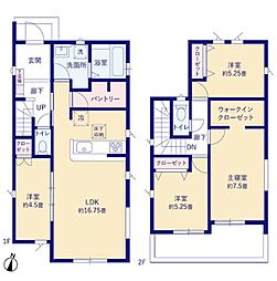 | 間取り | 4LDK 間取り内訳:リビングダイニングキッチン 16.7帖(1階)・洋室 4.5帖(1階)・洋室 7.5帖(2階)・洋室 5.2帖(2階)x2 |