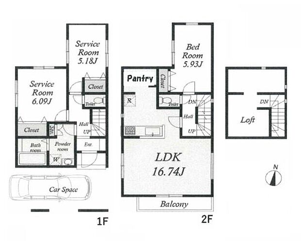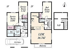 | 間取り | 1SLDK 間取り内訳:収納 6帖(1階)・収納 5.1帖(1階)・リビングダイニングキッチン 16.7帖(2階)・洋室 5.9帖(2階) |