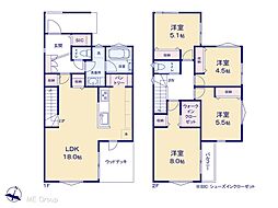 | 間取り | 3SLDK 間取り内訳:リビングダイニングキッチン 22帖(1階)・洋室 6帖(2階)・洋室 5.2帖(2階)・洋室 5.2帖(2階)・収納 3.7帖(2階) |