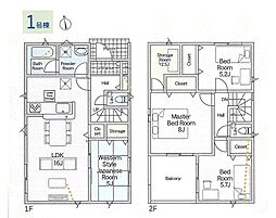 | 間取り | 4LDK 間取り内訳:リビングダイニングキッチン 17.1帖(1階)・洋室 5帖(2階)・洋室 5帖(2階)・洋室 6.7帖(2階)・洋室 4.4帖(2階) |